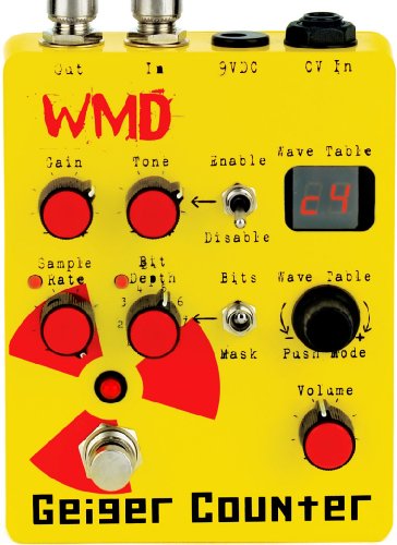 The WMD Geiger Counter is hundreds of entirely new face melting sounds. A high gain modern preamp drives an 8 bit computer, creating sounds which range from nice (tubey overdrive, lofi aliasing, hot gated leads) to total madness (impossible amounts of gain, multiple octave foldover, harsh digital data errors, and piercing sculpted noise). This is NOT a modeling pedal, it turns the fundamentals of digital into a source of extreme distortion. Read More at Amazon.com